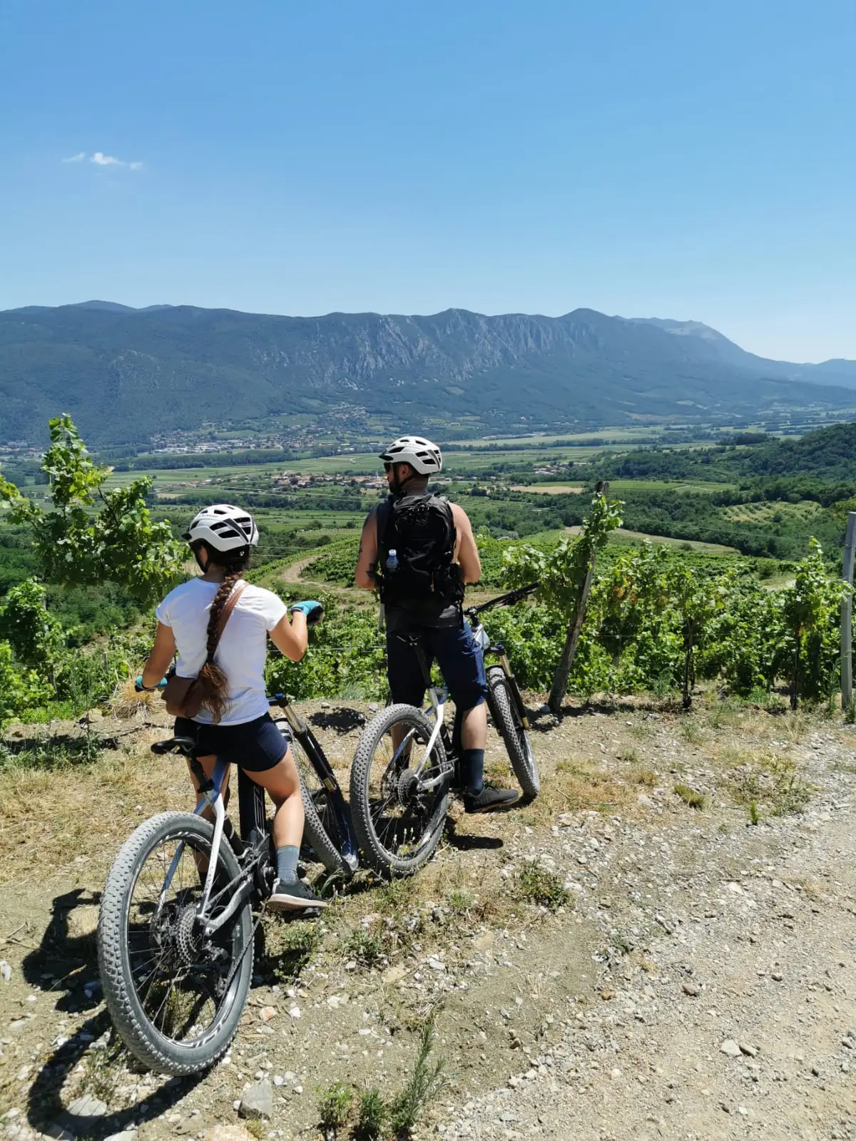 Join us on an unforgettable Bike and Wine Tour through the picturesque Vipava Valley, where gentle roads meander through vineyards and centuries-old villages-the perfect setting for a biking adventure. Cycle along serene, traffic-free backroads while uncovering local legends and stories of the region. Visit a beautiful wine cellar, learn about its rich history of winemaking, and discover family traditions which have been passed down through generations. Taste some native varieties of wines and tapas in a cosy setting inside a real wine cellar. At your choice: an MTB bike for more sensations or an E-bike to see everything comfortably.